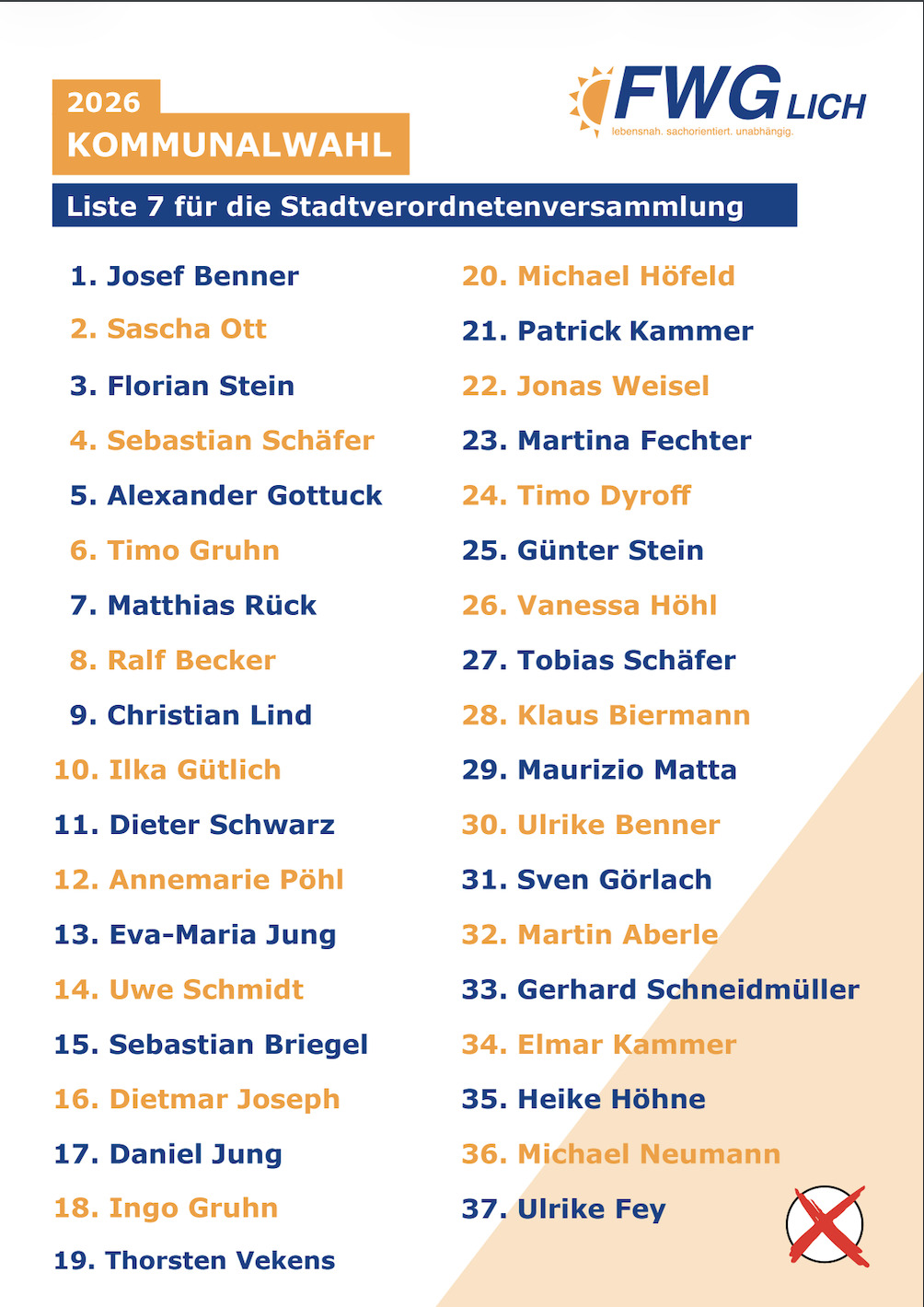 Liste der FWG Lich für die Stadtverordnetenversammlung für die Kommunalwahl 2026